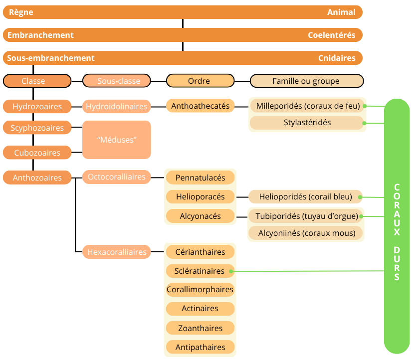 Classification des coraux (d'après Le Guide d'identification des coraux de Moorea, Bosserelle et al., 2014)