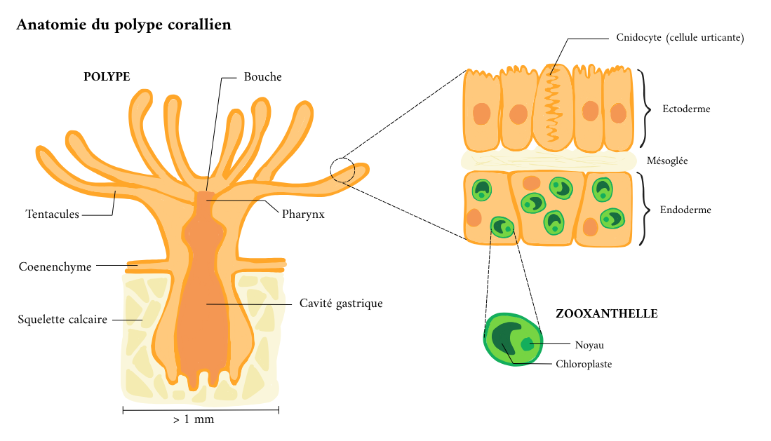🔎 L’anatomie du corail : un polype mou et un squelette calcaire